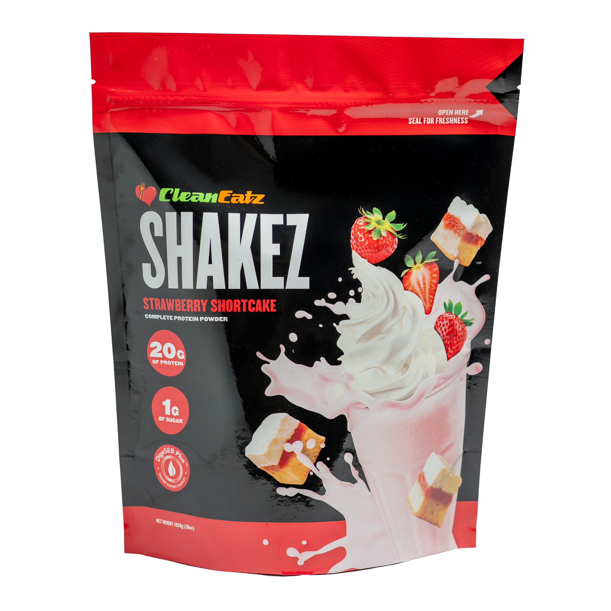 Clean Eatz Shakez are a blend of fast-acting whey proteins and slow-absorbing casein, making them perfect for any time of day. Our Shakez line is made with the highest quality proteins, so every flavor is packed with 20 grams of protein, naturally occurring essential amino acids, added BCAAs, digestive enzymes from DigeSEB Plus™, electrolytes, and only 1 gram of sugar. Protein powder is used in all smoothie recipes and jugs can also be sold retail.